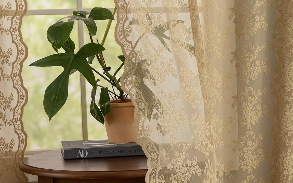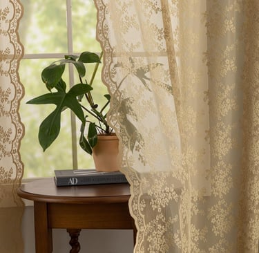 Bring timeless elegance and soft natural light into your home with these Vintage Taupe Lace Sheer Curtains. Designed with intricate crochet lace detailing and finished with graceful scalloped edges, these neutral sheer window panels add a warm, romantic, and airy touch to any bedroom, living room, dining room, kitchen, or farmhouse-style space. Each set includes 2 lightweight lace panels, each measuring 52" wide x 63" long, offering beautiful coverage while still allowing sunlight to gently filter through. The rod pocket top ensures quick, effortless installation on standard curtain rods, creating a soft gathered drape that enhances both classic and modern interiors. The earthy taupe/light coffee color blends seamlessly with boho, vintage, cottagecore, farmhouse, coastal, and neutral home décor, making these sheer lace curtains a versatile styling essential. The breathable fabric provides light privacy while maintaining an open, bright atmosphere—perfect for everyday living. Crafted for beauty and durability, these short lace curtain panels are made with quality stitching to resist fraying and maintain their shape over time. They are also easy to care for—machine washable on a gentle cycle and designed to stay soft and elegant wash after wash. Whether you're refreshing your home, styling a cozy reading nook, or searching for a thoughtful housewarming or holiday gift, these vintage crochet sheer curtains deliver effortless charm, softness, and timeless appeal.
